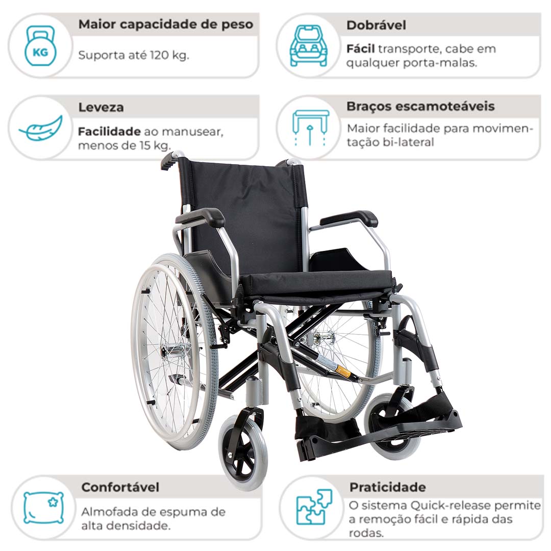 A Cadeira de Rodas Alumínio Dobrável D600 Dellamed é um produto de alta qualidade projetado para proporcionar conforto, resistência e leveza. Com capacidade de suportar até 120 kg, seu design duplo x, oferece uma estrutura robusta e durável. Feita com alumínio aeronáutico, a cadeira é resistente e ao mesmo tempo leve, facilitando o transporte e manuseio. Combinando praticidade e conforto, essa cadeira de rodas é uma escolha ideal para pessoas que buscam mobilidade e bem-estar. A D600 passou em todos os testes rigorosos do INMETRO e ANVISA.