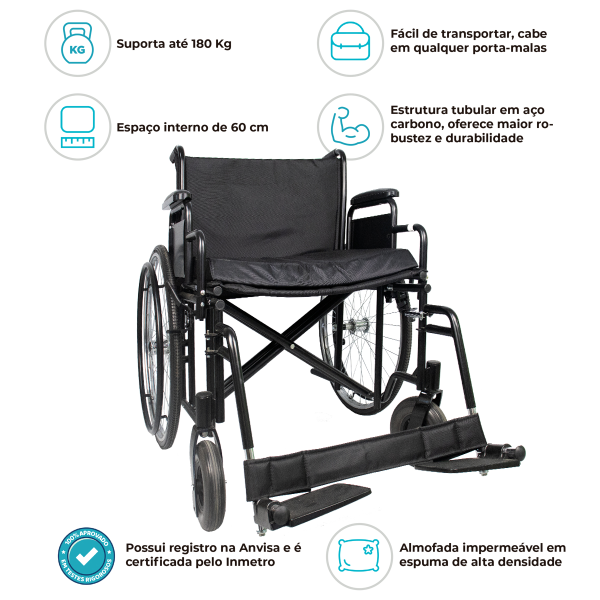Cadeira de Rodas para Obeso D500 Dellamed – Conforto, Segurança e Resistência Até 180 kg!