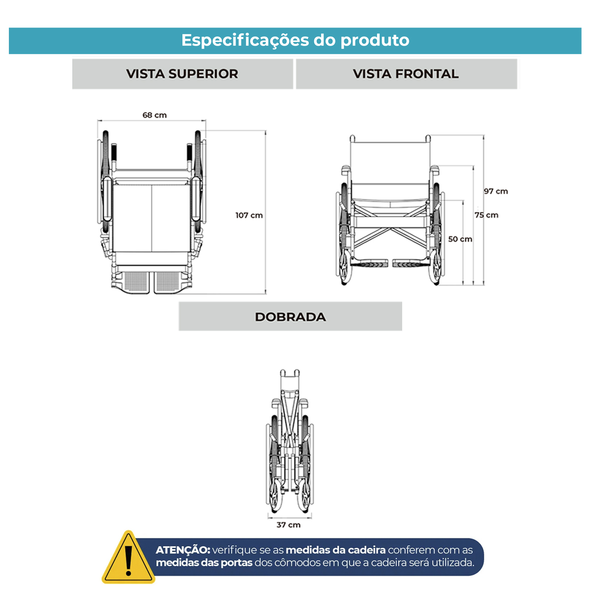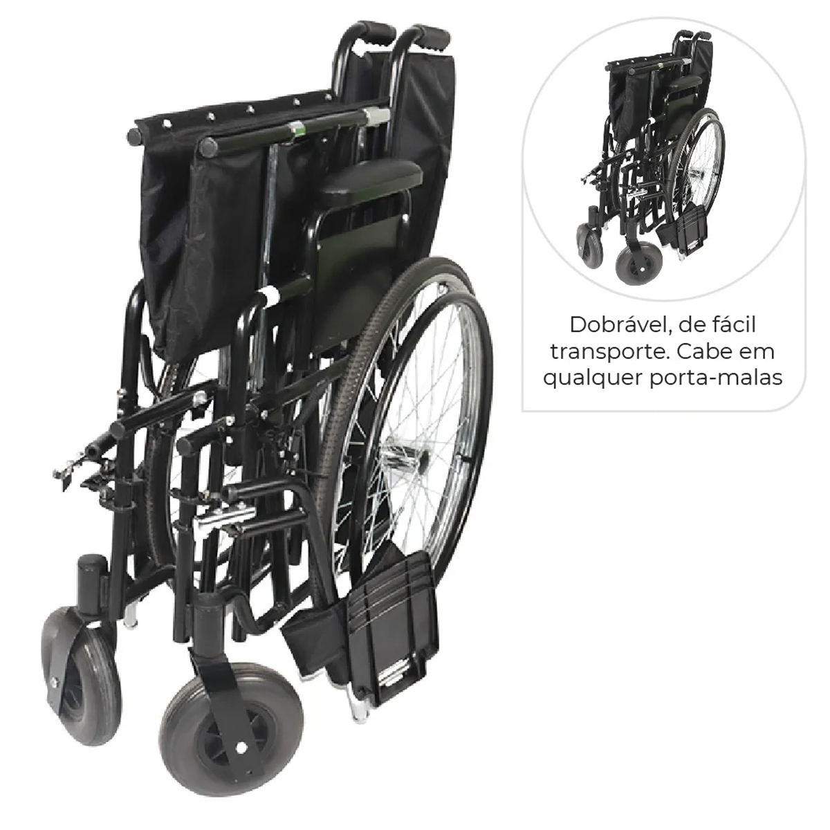 Dobrável com sistema duplo X, cabe facilmente no porta-malas.