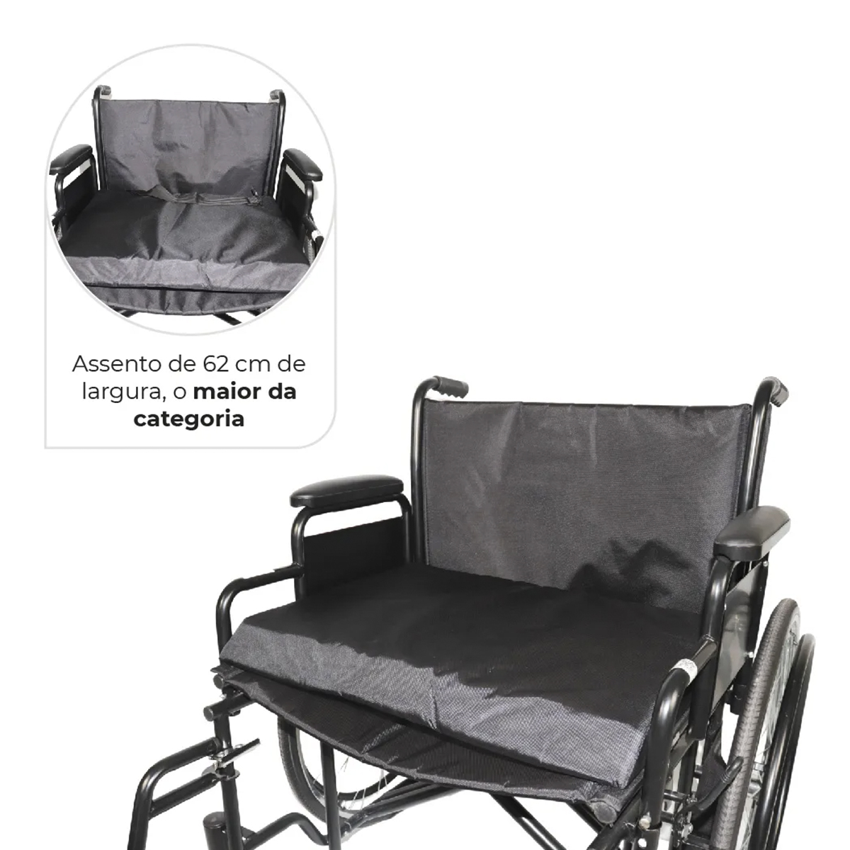 Assento extralargo de 62 cm para máximo conforto.