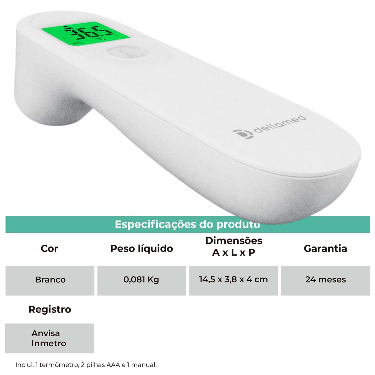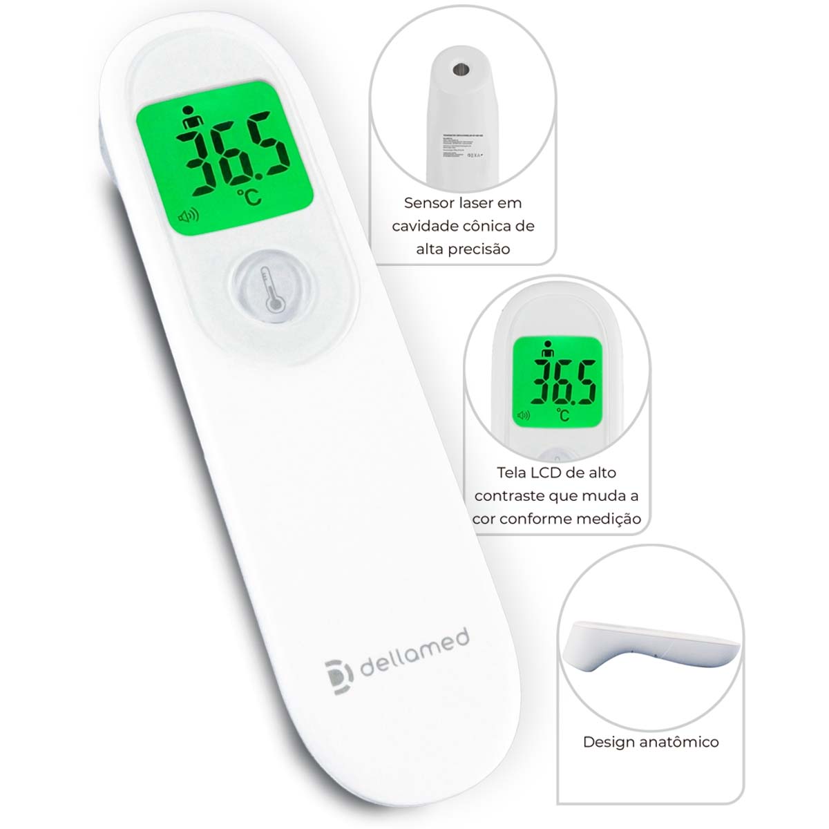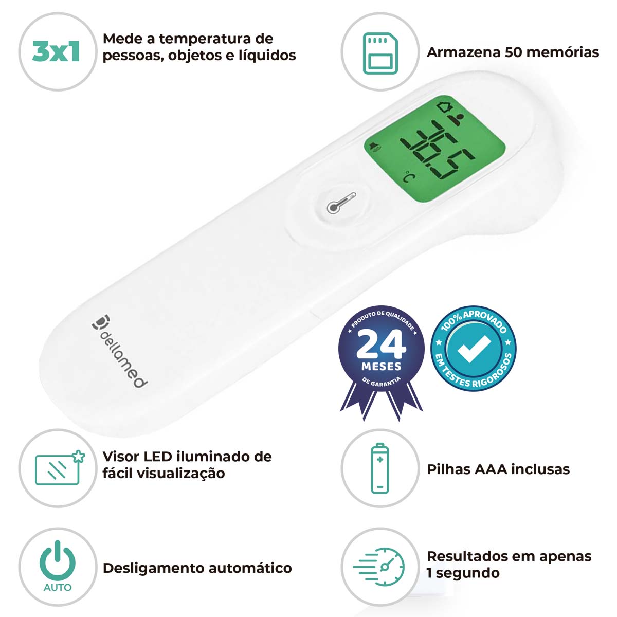 Termômetro Infravermelho 3 em 1 Armazena 50 Memórias Dellamed